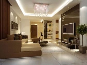 Комбинирайки източници на светлина на няколко нива, можете визуално да разделите стаята на функционални зони. Възприемането на пространството зависи от мощността на осветителните тела, тяхното разположение и общия брой. Има три основни области на осветление: