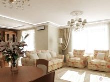 Апартаменти с площ от 65 кв. m предоставя на майсторите повече възможности за реализиране на идеи. Стаите могат да бъдат направени в различни стилове, но те трябва да имат общи черти. Например, разрешено е комбинирането на класика с неокласика.