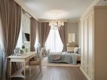 Друга трудност, с която могат да се сблъскат купувачите на апартаменти, е наличието на ъглова стая. Отличителна черта на това оформление е разположението на двойка отвори за прозорци в ъгъла. В този случай, когато декорирате стая, трябва да се даде предпочитание на симетрията. Минималистичен ъглов хол или неокласическа спалня ще изглежда хармонично. Прозорците пропускат достатъчно светлина, а декорът под формата на светли римски завеси в светли цветове ще направи пространството ефирно.
