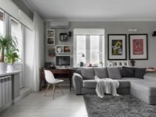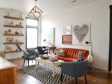 Мебелите в къщата са многофункционални. Диванът и леглото могат да се разгъват. В допълнение, тези мебели съдържат допълнителни отделения за съхранение на одеяла и спално бельо. Стаята не е затрупана с допълнителни гардероби. Маса за кафе може да играе ролята на трапезария, ако семейството има навика да прекарва много време в кухнята. Стените са украсени с картини, за да завършат образа. Те могат да съдържат както семейни снимки, така и детски творби..