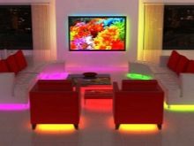 - Светодиоди имат нисък електрически капацитет, което ви позволява да намалите разходите за електричество. Те се отличават с голям цветен спектър, поради което се използват широко от дизайнерите в интериорния дизайн. По време на работа такива устройства не се нагряват, следователно пожарната безопасност на помещението се увеличава значително..