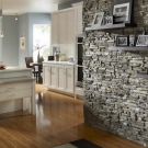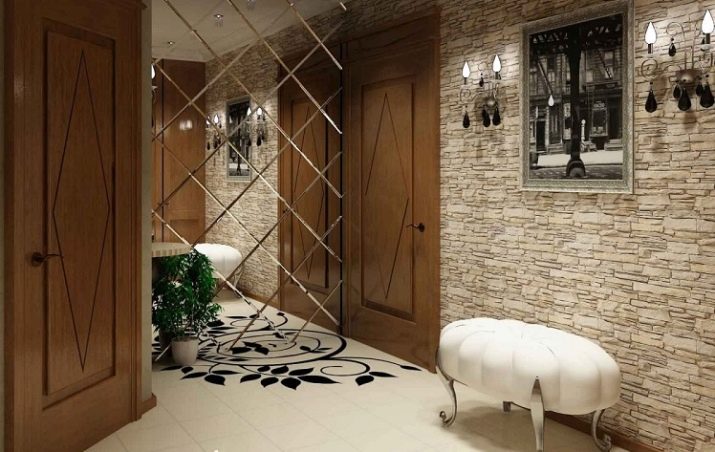 Каменният декор не се използва като монолитно покритие – това визуално стеснява стаята. Това покритие трябва да се редува с други материали. Каменният камък се използва за облицовка на стени. Този сорт се отличава с ниската си цена.. Обикновената зидария трябва да се комбинира с други видове облицовки. Декоративните елементи от малахит или мрамор ще изглеждат красиви. Преди да поставите облицовъчни каменни плочи, е необходимо внимателно да обработите и изравните грубата повърхност.