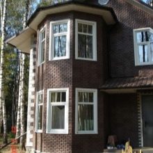 - Външен вид. Фасадата на такива сгради винаги изглежда по -представителна от подобни сгради, изработени от дървен материал или тухли. Възможността за „игра“ с формата на покрива, покрива, добавяне на балкони или дори еркери. В такива проекти ще бъде много по -лесно да се осигурят еркери, както и да се построят..