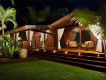 Бунгалото е чудесен вариант за горещ климат. Благодарение на тънките сглобяеми панели, вътрешната атмосфера е хладна. В такива къщи се използват фронтонни керемиди. Има лятна тераса.