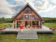 Такива дизайни са компактни. Например, двуетажна къща ще има жилищна площ от 80 до 126 м2..