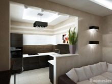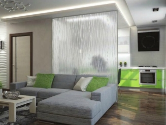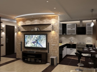Понякога проблемът се решава чрез екрани, прозрачни прегради, бар плот или мебели. Благодарение на това пространството не е затрупано и разходите за материали могат да бъдат сведени до минимум..