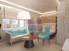- Възможно е да се направи двустаен “Хрушчов” просторен, като се инсталира функционален багажник за гипсокартон между стаите. Поради факта, че това пространствено решение не предвижда слепи прегради, няма ясни граници между стаите, което прави възможно възприемането на всички зони на апартамента като цяло. Стаите са декорирани в бяло. Това прави апартамента просторен и ефирен. Смелите цветови акценти придават динамика на интериора.