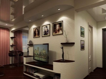 - Помощник при създаването на просторен апартамент ще бъде използването на конструкции от гипсокартон, декоративни ниши, рафтове и рафтове.