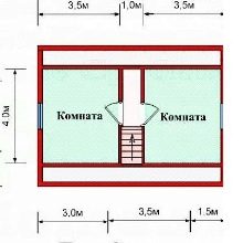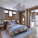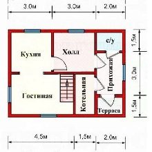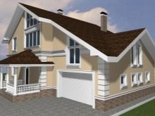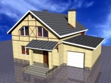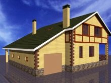 На приземния етаж стълбище води към спалнята на тавана. Къщата прилича на основна сграда с разширение (тераса и вестибюл). Терасата може да се превърне в веранда. Гаражът обикновено се намира на сутерена – заедно с работилницата; Руското законодателство позволява задълбочаване под нивото на земята до 5 м. Този проект може лесно да се превърне в двуетажен проект чрез промяна на таванския план, копиране на втория етаж по образа и подобието на първия.
