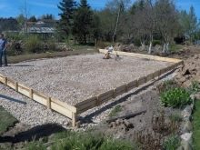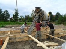 Опростеният процес на изграждане е както следва. Отделеното място на лятната вила се разчиства и изравнява, измерва се, съгласно плана. Под основата се копае яма с дълбочина 1-2 м, в зависимост от географската ширина и метеорологичните и климатичните условия на района. Факт е, че замръзването на почвата може да достигне дълбочина до 2 м, в зависимост от минусовата температура и действителната продължителност на периода на замръзване и замръзване.