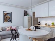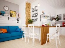 - диван и легло, маса и столове – всичко трябва да е просто, удобно, компактно и ергономично; ако е възможно, по -добре е да закупите сгъваеми столове и маса; вместо затворени гардероби, използвайте висящи рафтове и скоби за дрехи;