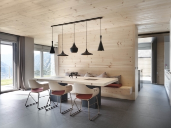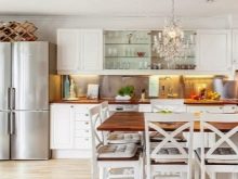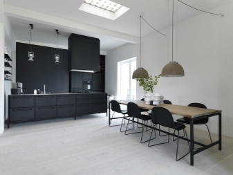 - струва си да се даде предпочитание на естествени материали: дърво, ратан, метал. Но ако се използва модерен скандинавски стил, тогава пластмасовите столове и стъкленият плот са напълно подходящи..