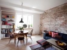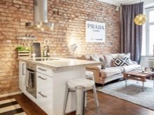 Жителите на малки апартаменти често намират заместител на естествените материали под формата на имитация на дърво, камък, тухли. Това спестява място и семеен бюджет..