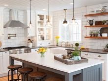 - Такава кухня е по -практична: цветна престилка над работната повърхност, дървен под, тъмен плот. Тази опция е най -функционалната и близка до нашия манталитет..
