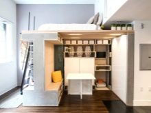 - мебелите трябва да са функционални: диванът се превръща в легло, под леглото има разтегателни места за съхранение, кухненската маса се плъзга, детската маса е двуетажна (долу е работно място, горе е място за спане);