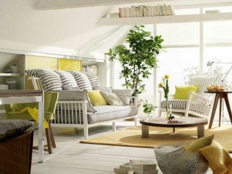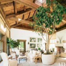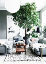 Всекидневната, като правило, е една от най -просторните стаи в апартамента, което означава, че любителите на декоративни растения имат къде да се скитат тук. Можете да засадите бонсай в сандъци или да засадите буйни широколистни храсти.