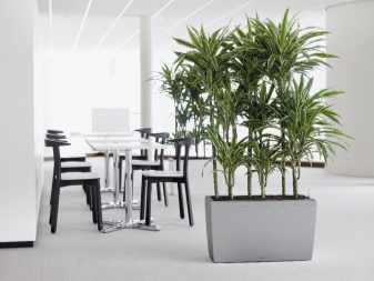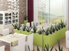 Растенията в саксии, поставени в един ред, могат да заменят преградата ви, разделяйки стаята на зони. Това е основната техника за ползване на декоративни растения..