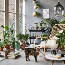 Цветята тук могат да бъдат поставени навсякъде: на стената, на первазите на прозореца, на пода и дори под тавана. Не се страхувайте да поставите различни растения в една и съща стая. В този манастир папратите ще изглеждат доста органично до палми, кактуси, бръшлян и рози. Изберете всички цветя, които харесвате. Чувствайте се свободни да ги използвате за украса на балкона.