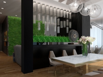 Еко-минимализмът също се откроява. Предпочитание се дава само на естествени материали с естествени нюанси. Повече зеленина и стайни растения във всички части на апартамента. Възможно е дори имитиране на резервоар или малък фонтан, ако разположението на корпуса позволява. Необходимо е да се използват възможно най -много източници на светлина, а прозорците винаги трябва да са без завеси..