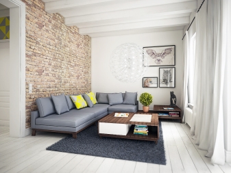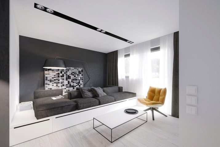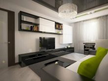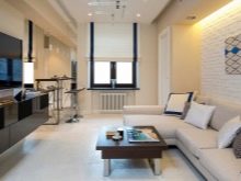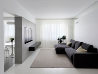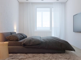 Малките 1-стайни апартаменти са декорирани в стила на минимализма, в който няма достатъчно свободно пространство. На първо място, необходимо е правилно да се зонира пространството, дизайнерите предлагат смело да се отърват от преградите и ненужните стени и да създадат една единна свободна стая. В отделна малка стая оборудвайте спалнята. Можете да го направите с едно ниско легло, нощно шкафче и гардероб.