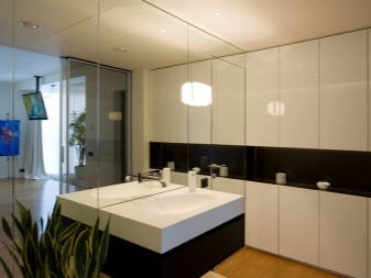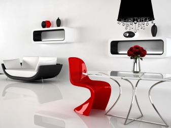Да предаде напълно същността на стила на минимализма, откажете се от дялове и всякакви ограничители на пространството. Когато избирате мебели, трябва да дадете предпочитание на стъклени или огледални повърхности. Това ще създаде ефект на прозрачност и обекти, плаващи във въздуха..