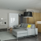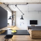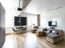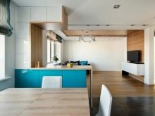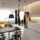 Всички врати (от входа до вратите на шкафа) трябва да са плъзгащи се, така че дайте предпочитание на гардероб. В кухнята комбинирайте зоната за готвене с трапезарията. Не забравяйте за вградените уреди и удължените кухненски модули без дръжки.