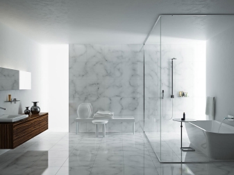 В банята използвайте стъкло и метални покрития. Прозрачната душ кабина ще бъде прекрасно решение за интериора. Оставете възможно най -много място в хола.