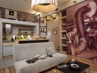 Често се използва за декориране на жилище с определено оформление. Това е модерен стил, вдъхновен от процъфтяващата американска индустрия през 50 -те години. Някои го наричат - фабричен стил. Тук няма достатъчно светли нюанси., приоритет се дава на сиви, тухлени, черни тонове. Материали като метал, камък, дърво са напълно подходящи тук..