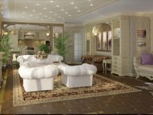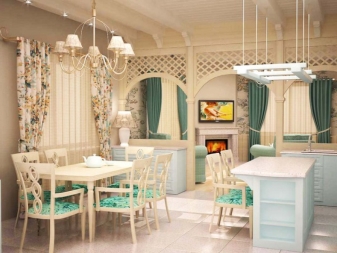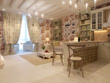 Този стил също прави много оригинално студио. Пълно е с романтика и свежест. Светли цветове по стените и пода, флорален орнамент върху текстил – това са основните характеристики на това стилистично решение..