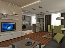 Обзавеждането на студио апартамент зависи от зоните, от които се нуждаете. Почти никое жилище не може без стандартен набор от зони, който е включен в едностаен апартамент, тоест хол и кухня. За такава обстановка ще ви трябва кухненски комплект, трапезария и място за почивка и сън – зона за диван.