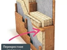 Същността на кръстосаната изолация е създаването на спомагателен изолационен слой. Намира се близо до обичайния топлозащитен слой и има средна ширина 15 см; в резултат на това общата дебелина ви позволява да се предпазите дори от много тежки студове.
