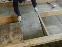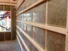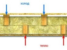 Започнете с оформяне на 5 см слой. Основният топлоизолационен слой се поставя между стълбовете, точно на тяхното ниво. След това поставят дървената рамка изцяло. Върху пароизолацията контактните зони са залепени с лента. Крайното покритие традиционно е щайга – може да се направи отвътре от греди 5х5 см, както и отвън, поради което може да се подаде една поръчка.