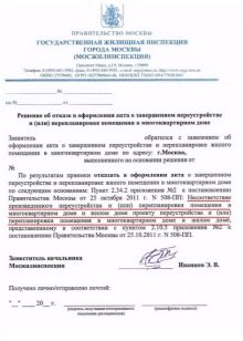 В резултат на разглеждане на заявлението ще бъде издаден документ или за разрешение, или за забрана за преустройство. В първия случай можете спокойно да продължите с ремонта. Във втория случай внимателно проучете документа, Официалните причини за отказ могат да бъдат три: