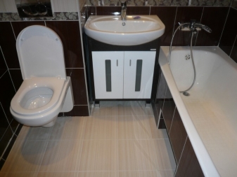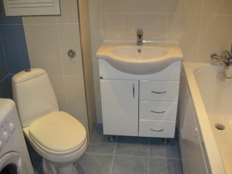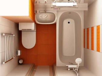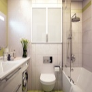 - Комбинирането на банята и тоалетната ще помогне за визуално увеличаване на пространството и успешно настаняване на необходимите предмети (пералня, домакински прибори).