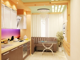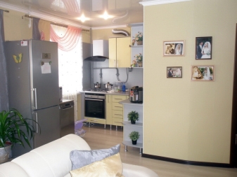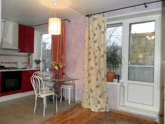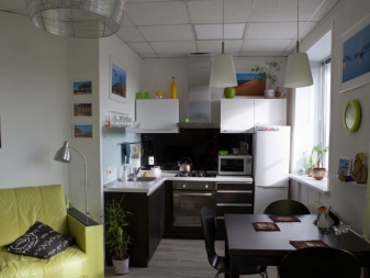 - Малката площ на кухнята “Хрушчов”, като правило, води до комбинация със съседна стая. Резултатът е хол с трапезария..