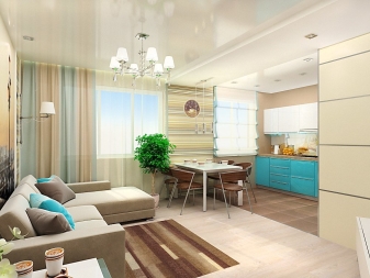 - Разрушаването на завеси и издигането на леки зониращи конструкции ще добавят насипно състояние към малко пространство.