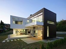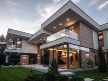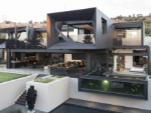 - Многостепенни структури са класифицирани като премиум къщи, те са интересни от архитектурна гледна точка. Но проектирането и изграждането на дори малка такава структура е значително по-скъпо от строителството на двуетажна къща..