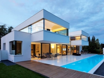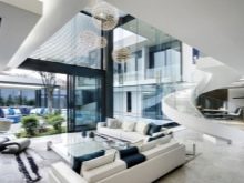 Дори и най-сложният на пръв поглед високотехнологичен проект има лаконична и семпла интериорна декорация. При планирането на сгради няма да намерите сложни ходове и решения; това е минимализъм във всичко, от стени до аксесоари. Но винаги има достатъчно светлина и въздух. Вътрешното пространство на къщите има минимален набор от прегради, жилищното пространство остава възможно най -свободно. Спазването на пропорциите в стаите се счита за задължително изискване..