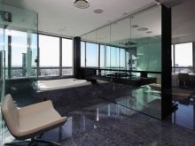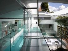 Интересно дизайнерско решение е създаването на прозрачен стъклен покрив. Благодарение на остъкления покрив, можете да получите максимално количество слънчева светлина през деня, а през нощта можете да се любувате на звездното небе и да се отпуснете..