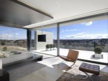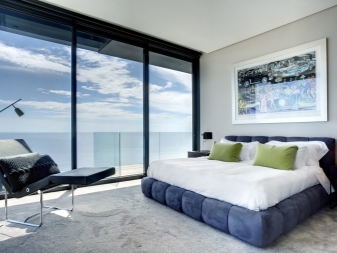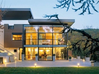 Високотехнологичните сгради се характеризират с максимално остъкляване, поради което при изграждането на къщи те използват панорамни прозорци към цялата стена.