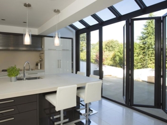 Тази техника ви позволява да постигнете не само отлично естествено осветление в жилището, но и да създадете ефект на визуално увеличаване на площта поради прилежащия пейзаж (местна зона).