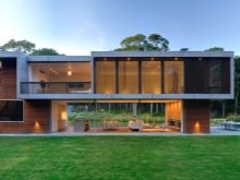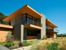 Плосък покрив, широки прозорци, заменящи стените, са стандартни характеристики на къщите в тази посока..