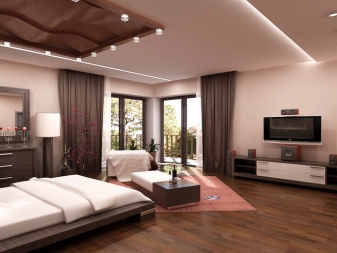 Има проекти, при които прозорците са вградени в покрива, такива тавански конструкции изглеждат интересно над леглото или зоната за сядане.