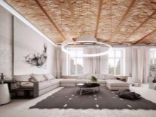 - Като материали за таванското пространство често се използва обикновена шпакловка, опънатите тавани са характерни за такъв дизайн.