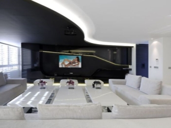 Така че, за всекидневна в хай-тек стил са характерни следните: