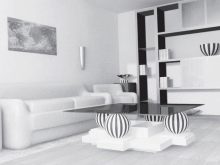 - Сдържани цветове. Дизайнът е доминиран от строга студена палитра: нюанси на черно, бяло, сиво и сребрист металик. Ярките детайли и всякакви орнаменти ще бъдат неподходящи тук. Могат да се използват малки количества едноцветни акценти. Интериорът често включва черно-бели фотографии и щампи, картини и скулптури в духа на авангарда..