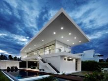Ярък пример за ефектен екстериор е вилата Aviator s в Съединените щати. Сложна сграда, проектирана специално за пенсиониран пилот, беше възстановена на малък хълм близо до езерото.