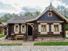 - Руски стил. Безупречни пропорции, четирискатен покрив или покрив с купол, наличие на издълбан декор, просторна веранда (или парапети или колони наблизо), дебелина на стената без допълнителна изолация.
