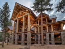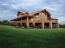 Модерен стил. Тежестта на формите, ясната, проверена геометрия са му присъщи. Дневниците са инсталирани равномерно, не може да има смени. Основният материал може да се комбинира с всичко друго, дори с пластмаса и метал. И всичко това също е комбинирано с панорамно остъкляване. Изглежда, че традициите се „стопят“ с новата история, но може да изглежда и впечатляващо.