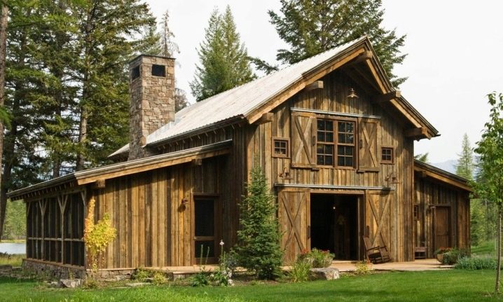- Хамбар. Минималистична правоъгълна къща с двускатен покрив. По същество това е плевня, превърната в жилище. Прост, но много уютен на външен вид, не изисква никакви излишни украшения.